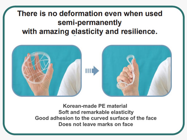 Korean made PE Material that is Soft and remarkable elasticity with good adhseion to the curved surved of the face, thus this does not leave marks on face.