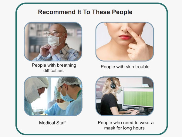 Recommend for people with difficulty breathing, medical staffs, who wears a mask for a long time and those who have skin problems due to masks.